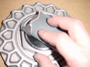 コンパウンドをウエスにつけてレンズを磨きます。丁寧に根気よく磨きます。