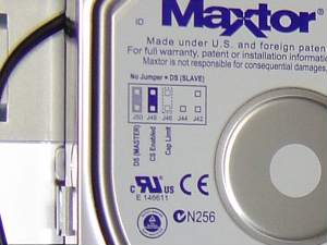 こっちはメインになるのでジャンパーピンをMasterに設定。右はWD2500JBのジャンパーピンの配列。Slaveに設定。